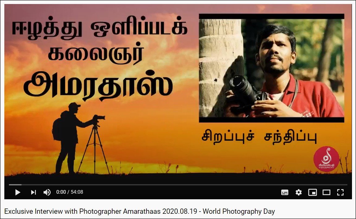 உலக ஒளிப்பட தினத்தை முன்னிட்டு, 2020.08.19 அன்று சுயாதீன ஊடகரும் கலைஞருமான அமரதாஸ் அவர்கள் சிறப்பு நேர்காணல் ஒன்றினை வழங்கியுள்ளார். அவுஸ்திரேலியாவில் வசிக்கும் ஊடகரும் எழுத்தாளருமான கானா பிரபா அவர்களால் இந்த நேர்காணல் மேற்கொள்ளப்பட்டிருக்கிறது.
