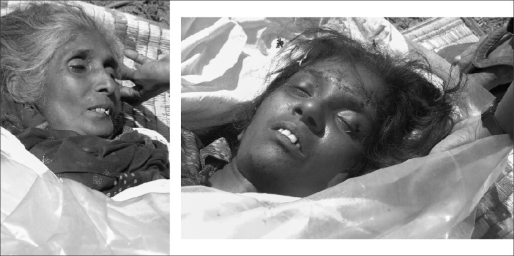 2009 பெப்ரவரி மாதத்தின் ஆரம்பத்தில் ஒரு நாள், ‘சுதந்திரபுரம்’ பகுதியில் இயங்கிய தற்காலிக வைத்திய நிலையத்திற்குப் பின்புறமாக, இறந்தவர்களின் உடல்கள் அடுக்கப்பட்டு அகற்றப்பட்டுக்கொண்டிருந்தன. இரண்டு உடல்களுக்கு நடுவில் உறைந்துபோயிருந்த ஒரு பெண் போராளி, கமெராவோடு சென்ற என்னைக் கண்டு ஓடி வந்தார். ‘அடக்கம்’ செய்வதற்கு அனுப்பப்படவிருந்த அந்த இரண்டு உடல்களையும் ஒளிப்படங்களாக்கித் தருமாறு உருக்கமாக வேண்டினார். மூடியிருந்த பொலித்தீன் பொதிகளை விலக்கிச் சரிசெய்து, ஒளிப்படங்களைப் பதிவுசெய்ய வசதியாக, அந்த முகங்களைத் திருப்பி எனக்குக் காண்பித்தார். ஒரு முகம் அவரது அம்மாவுடையது. மறு முகம் அவரது அக்காவுடையது. ஐயோ…
