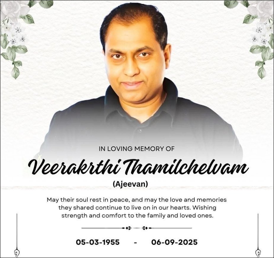 நேற்று (2025-09-06) சுவிஸ் நாட்டில் ஒரு நாடக விழா நிகழ்விற்குச் சென்றிருந்தபோது. அங்கு வந்திருந்த நண்பர் ஆதவன் அவர்கள் மூலம், நண்பர் அஜீவன் அவர்களது மறைவு பற்றி அறிய நேர்ந்தது.